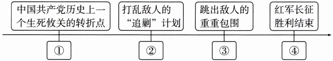 5. 在“重走长征路·忆峥嵘岁月”的研学活动中,某同学制作了以下路线图(部分)。下列与图中①②③④处对应正确的是( )。