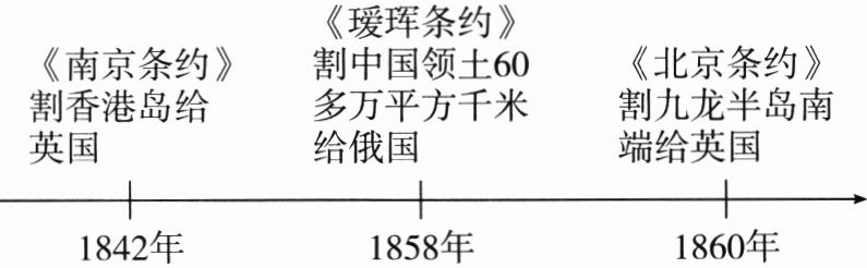 |《南京条约》割香港岛给英国(1842年)|《瑷珲条约》割中国领土60多万平方千米(1858年)|《北京条约》割九龙半岛南端给英国(1860年)|