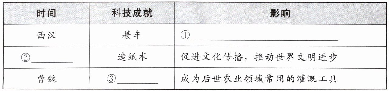 |曹魏|③______|成为后世农业领域常用的灌溉工具|