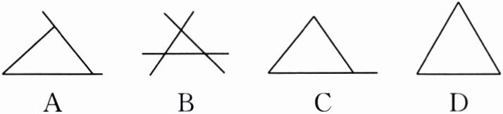 1. 下面是一位同学用三根木棒拼成的图形,其中以三根木棒为边组成的三角形是(