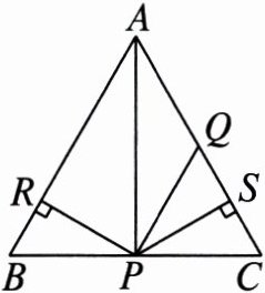 4. 如图,在 $\triangle ABC$ 中,$PB = PQ$,$PR = PS$,$PR \perp AB$ 于 $R$,$PS \perp AC$ 于 $S$,则下列三个结论:① $AS = AR$;② $QP // AR$;③ $AB + AQ = 2AR$ 中(