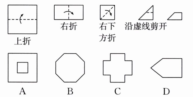4. 如图,把一张正方形纸片对折三次后沿虚线剪下,则所得图形是(