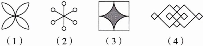 (1) 图形的对称轴为过花蕊中心且平分相邻两花瓣夹角的两条直线(或表述为两条对角线及两条对边中点连线 ,共4条,由于对称图形,画出其中两条相互垂直的即可,一般画过图形中心且使图形沿该直线折叠后两边完全重合的直线),在图中画出这2(4条中选代表画2条体现对称性即可)条对称轴。