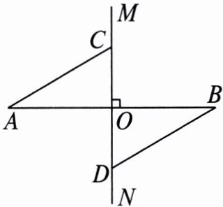 ∴AO=BO,MN⊥AB,即∠AOC=∠BOD=90°。