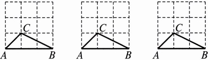 5. 在方格纸中,每个小格的顶点叫作格点,以格点为顶点的三角形叫作格点三角形。如图,在 $3×3$ 的正方形格点图中,有 $\triangle ABC$,作 $\triangle DEF$ 使得 $\triangle ABC$ 和 $\triangle DEF$ 关于某直线成轴对称,请在下面的图中画出三种这样的 $\triangle DEF$。