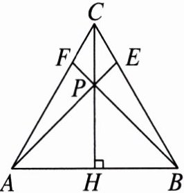 2. 如图,在等腰三角形 ABC 中,CH 是底边上的高,点 P 是线段 CH 上不与端点重合的任意一点,连接 AP 并延长交 BC 于点 E,连接 BP 并延长交 AC 于点 F.求证: