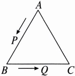 6. 如图, $ \triangle ABC $ 是边长为 $ 6 \, cm $ 的等边三角形,动点 $ P $, $ Q $ 同时从 $ A $, $ B $ 两点出发,分别沿 $ AB $, $ BC $ 方向匀速移动。