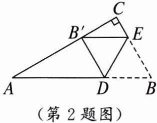2. 如图,在 $ Rt \triangle ABC $ 中, $ \angle C = 90^{\circ} $, $ BC < AC $。点 $ D $, $ E $ 分别在边 $ AB $, $ BC $ 上,连接 $ DE $,将 $ \triangle BDE $ 沿 $ DE $ 折叠,点 $ B $ 的对应点为点 $ B' $,若点 $ B' $ 刚好落在边 $ AC $ 上, $ \angle CB'E = 30^{\circ} $, $ CE = 3 $,则 $ BC $ 的长为