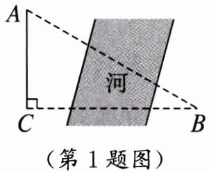 1. 如图,某研究性学习小组为测量学校 $ A $ 与河对岸工厂 $ B $ 之间的距离,在学校附近选一点 $ C $,利用测量仪器测得 $ \angle A = 60^{\circ} $, $ \angle C = 90^{\circ} $, $ AC = 2 \, km $。据此,可求得学校与工厂之间的距离 $ AB $ 等于(