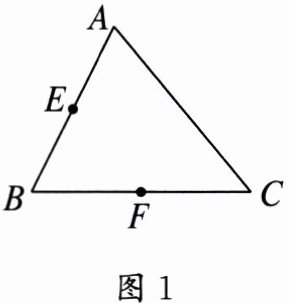 (1)如图 1,在 $ \triangle ABC $ 中,$ E $,$ F $ 分别为 $ AB $,$ BC $ 的中点,请在图 1 中画出 $ AC $ 的中点 $ M $;
