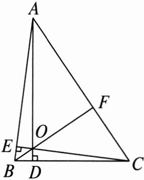 8. 如图,在 $ \triangle ABC $ 中,$ AD \perp BC $,$ CE \perp AB $,垂足分别为点 $ D $ 和点 $ E $,$ AD $ 与 $ CE $ 交于点 $ O $,连接 $ BO $ 并延长交 $ AC $ 于点 $ F $,若 $ AB = 5 $,$ BC = 4 $,$ AC = 6 $,则 $ CE : AD : BF $ 的值为