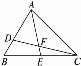 5. 如图,$ AE $ 是 $ \triangle ABC $ 的中线,点 $ D $ 在边 $ AB $ 上,$ AD = 2 BD $,$ CD $ 与 $ AE $ 交于点 $ F $,设 $ \triangle ADF $ 的面积为 $ S _ { 1 } $,$ \triangle CEF $ 的面积为 $ S _ { 2 } $,若 $ S _ { \triangle ABC } = 9 $,则 $ S _ { 1 } - S _ { 2 } = $(