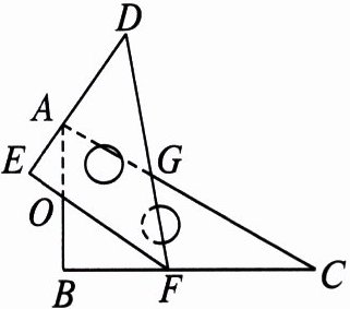 在△AOE和△FOB中,∠E=∠B=90°(三角尺直角),∠AOE=∠FOB(对顶角相等),由三角形内角和定理得∠EAO=∠BFO。