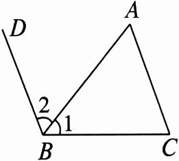 又因为$\angle DBC=\angle 1+\angle 2$,所以$\angle 1+\angle 2+\angle C = 180^{\circ}$,即$\angle A+\angle B+\angle C = 180^{\circ}$,所以三角形内角和为$180^{\circ}$。