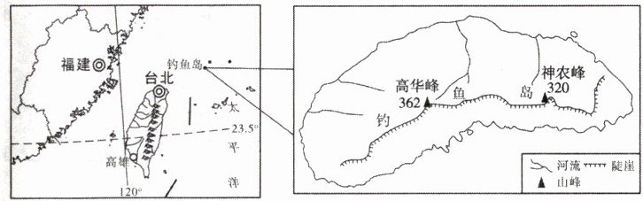读钓鱼岛及其附属岛屿地形简图,完成 3~5 题。