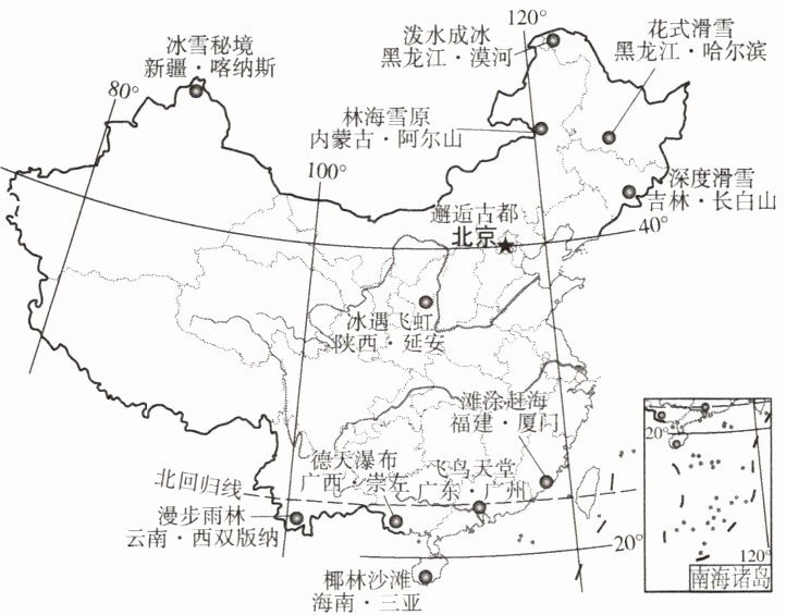 1. “南北互换”式旅游热门景点中,最接近我国领土最北端的是(