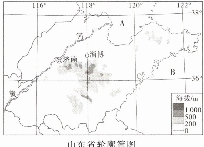 )8. 淄博所在省级行政区濒临的海洋A、B分别是(