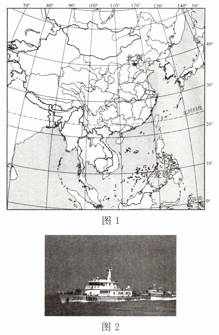 2024年8月29日是我国第21个全国测绘法宣传日,以“规范使用地图 一点都不能错”为主题。图1为中国疆域图,图2为中国海警巡航仁爱礁景观图。