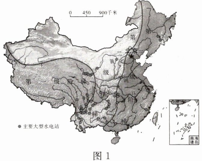 材料三:图1为中国主要大型水电站分布,图2为中国地势三级阶梯示意图。