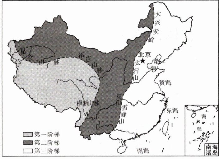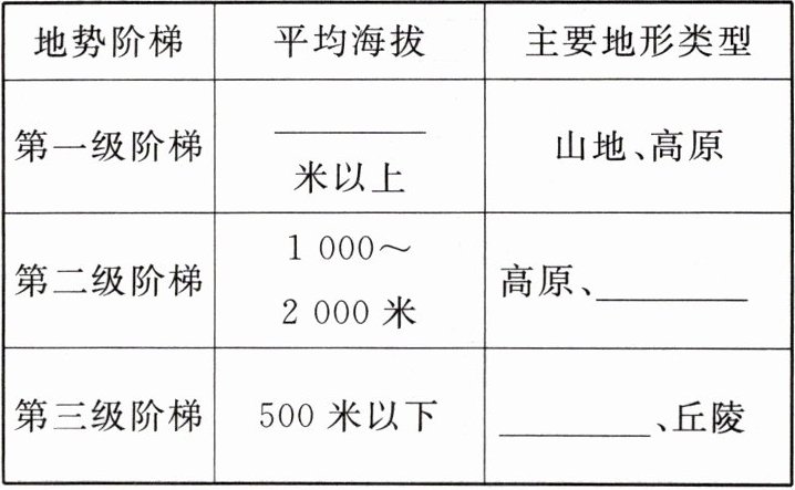 (2)补充三级阶梯的海拔范围和主要地形类型表。