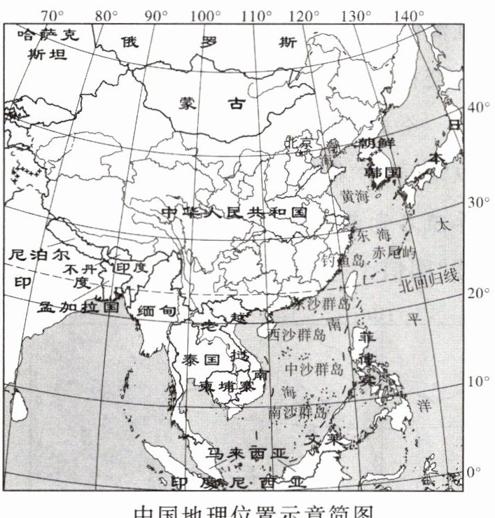 带,南部部分地区位于热带,没有地区位于寒带,光热条件好。(3)我国位于