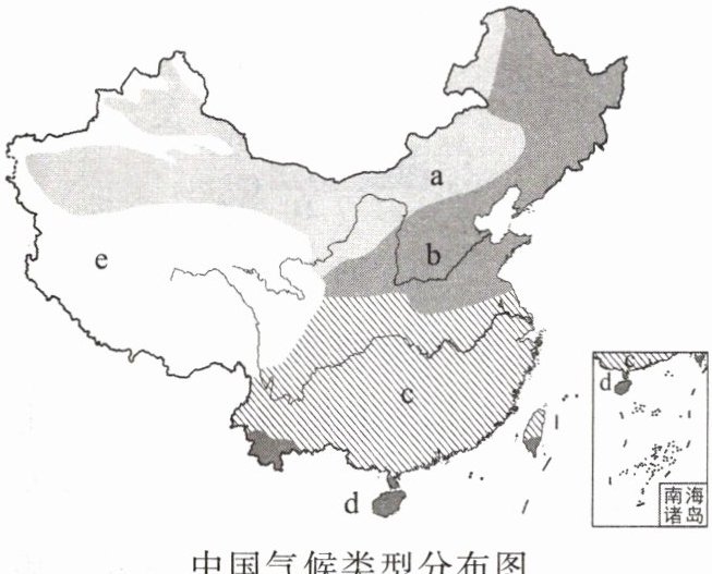 读中国气候类型分布图,完成13~14题。
