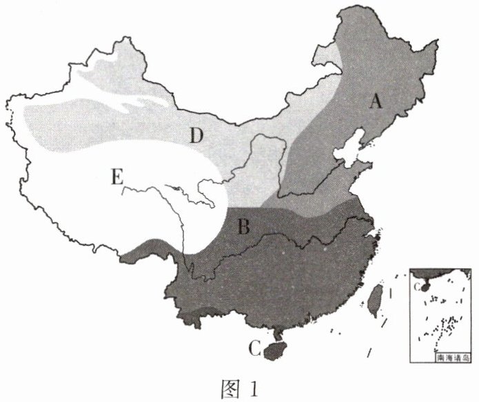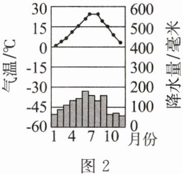 (3)图1中我国湿润区与半湿润区的分界线与______毫米年等降水量线基本一致。