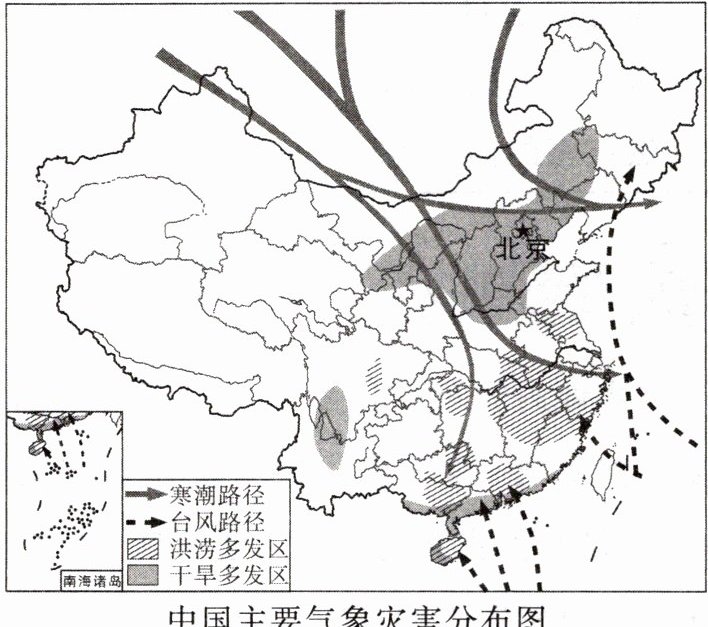 (北方或南方)的季风区。(2)寒潮大风和冰雪灾害对