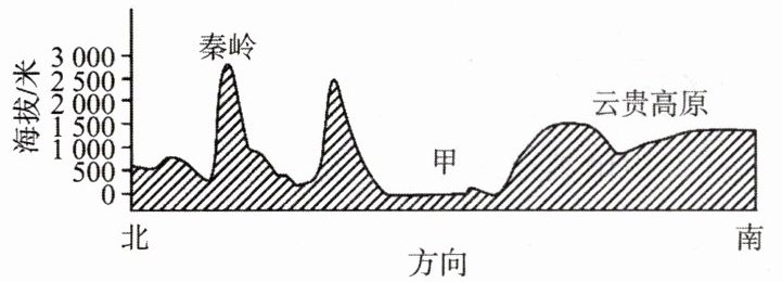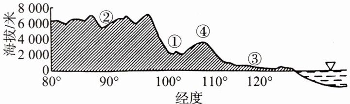 下图为我国沿 $ 106.5^{\circ}E $ 经线的局部地形剖面图。
