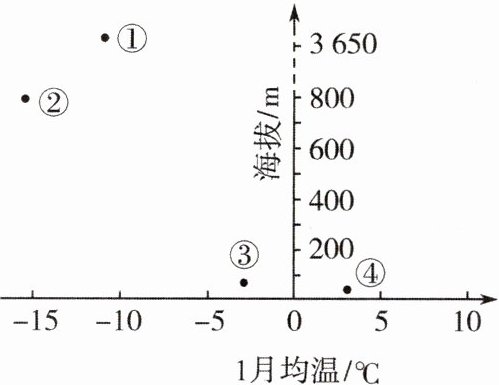 下图中①②③④分别代表乌鲁木齐、石家庄、拉萨、武汉四城市。