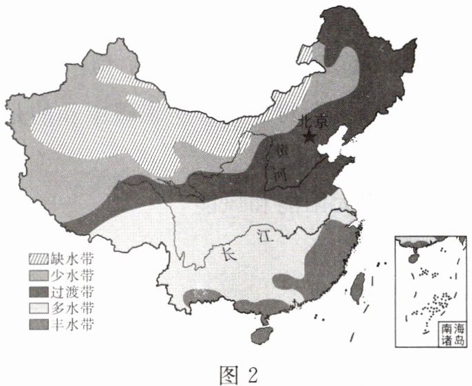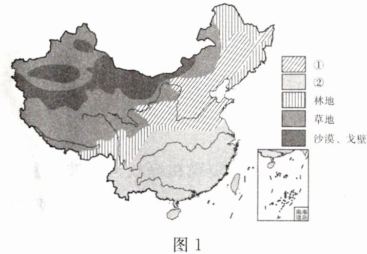 材料三:图1为中国主要土地利用类型的分布图,图2为中国水资源分布图。