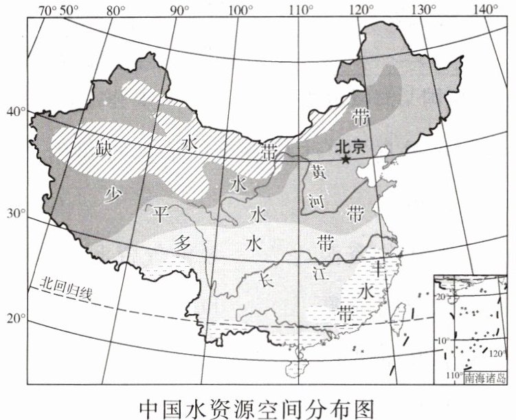 (1)观察我国水资源空间分布图可知,我国水资源的空间分布特点是