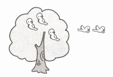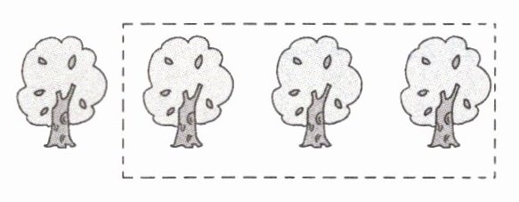 2. $4 - 3 = 1$(题目未明确是树上果子数量等,按常见理解,假设每棵树4个果子,虚线框表示去掉3个)
