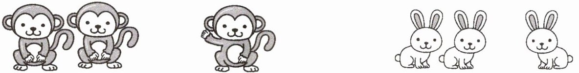 1. 左边有2只猴子,右边有1只猴子,一共有几只猴子?2+1=3