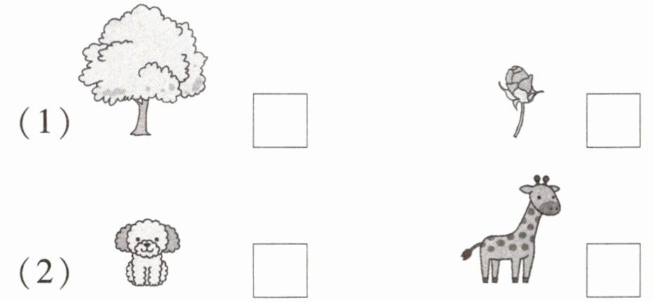 2. 在高的后面画“√”,在矮的后面画“○”。