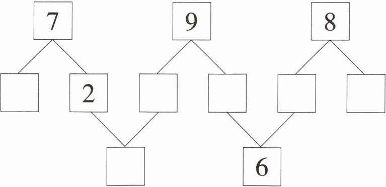 【解析】:对于7的分合:7可以分成5和2(左边第一个空),也可分成2和5(最下面中间的空);对于9的分合:9可以分成5和4(中间上面的空),也可分成3和6(中间下面的空);