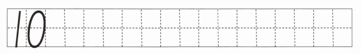 在田字格中左边的格子里写“1”,右边的格子里写“0”,组成数字“10”。