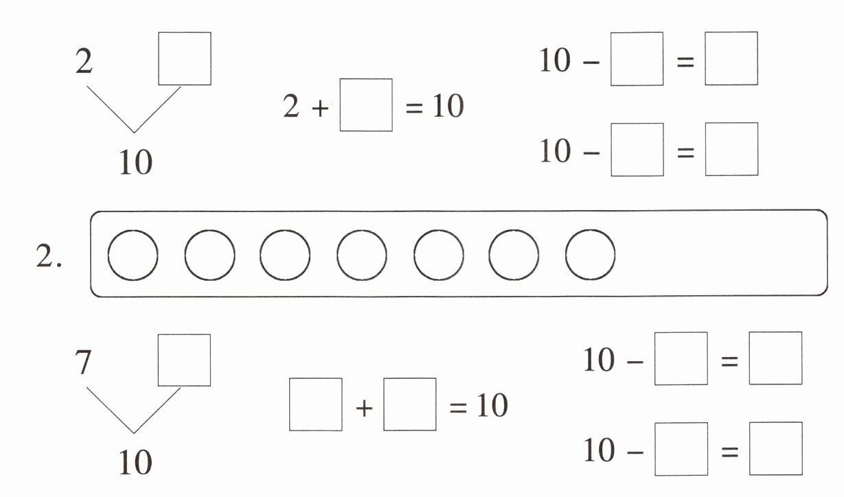 2. 9+1=10;1+9=10;10-9=1;10-1=9