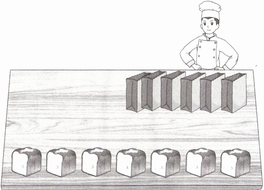 四、一个包装袋里装一个面包,袋子够吗?圈一圈。