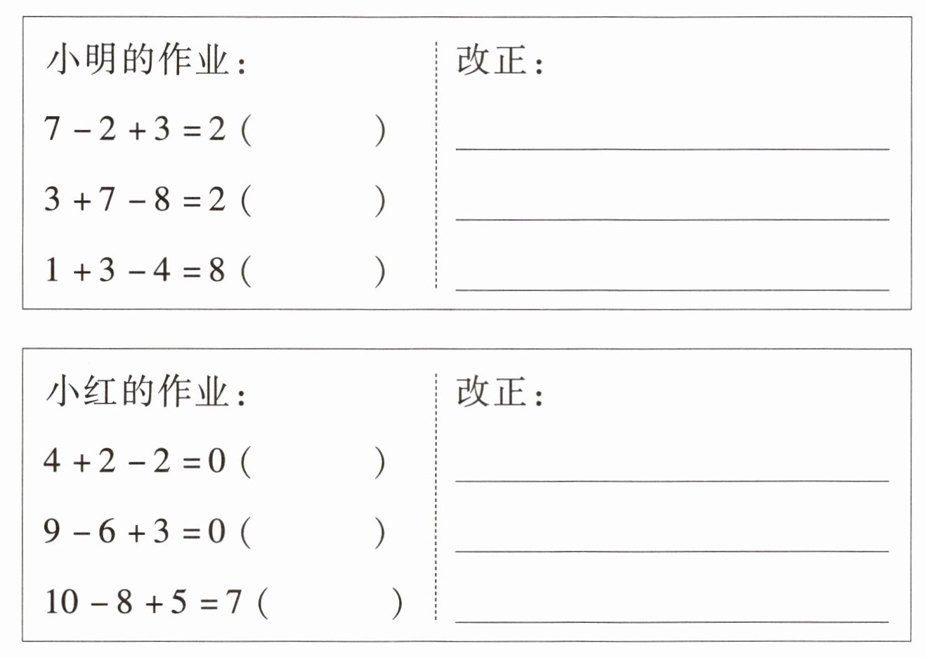 六、用“√”或“×”批阅下面的作业,并把错误的改正过来。