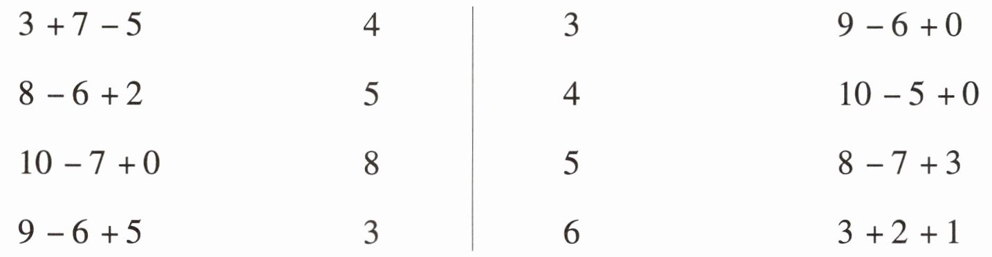 $3 + 7 - 5$连5;$8 - 6 + 2$连4;$10 - 7 + 0$连3;$9 - 6 + 5$连8;$9 - 6 + 0$连3;$10 - 5 + 0$连5;$8 - 7 + 3$连4;$3 + 2 + 1$连6。