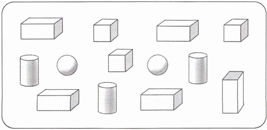 长方体有( )个,正方体有( )个,圆柱有( )个,球有( )个。
