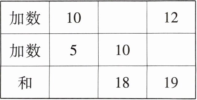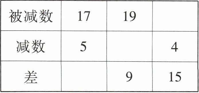 【答案】:加法表从左到右,和的空格依次填15,8,7;减法表从左到右,差的空格依次填12,10,19。