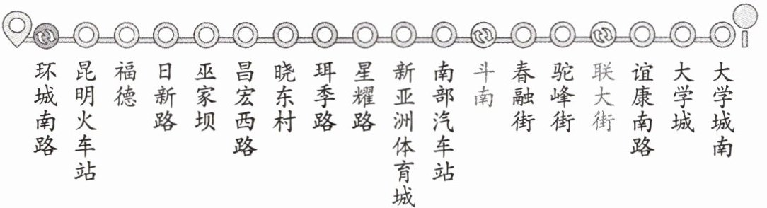 5. 下面是昆明市地铁 1 号线部分路线图。