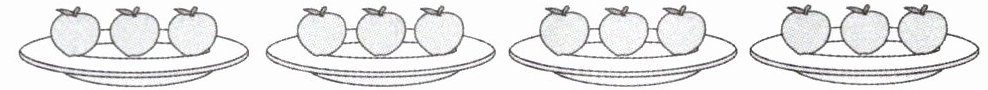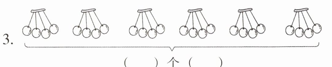 4. (1)横着看,右图中每行有$(\quad)$个橘子,有$(\quad)$行,表示$(\quad)个(\quad)$相加。