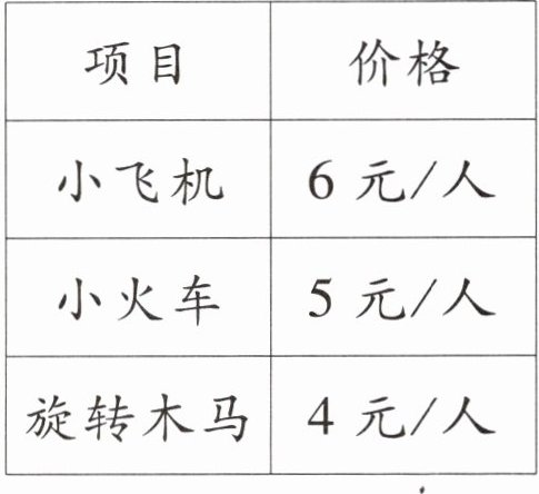 每人玩一次旋转木马,价格为4元/人,一共花费: