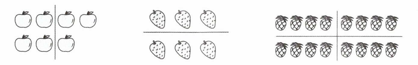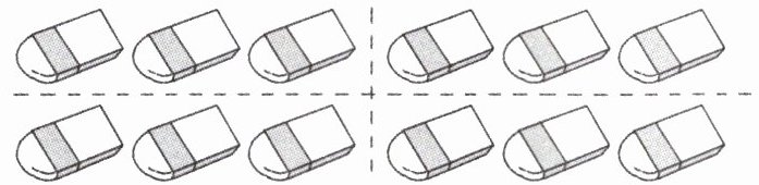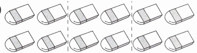 一共( )块橡皮,每( )块分成一份,平均分成了( )份。