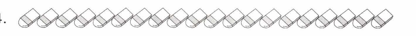 一共有( )块橡皮,平均分给4组的同学,每人可以分( )块。