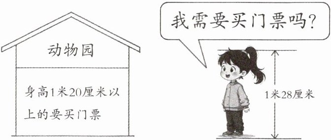 小女孩身高1米28厘米,1米20厘米 = 1米20厘米,