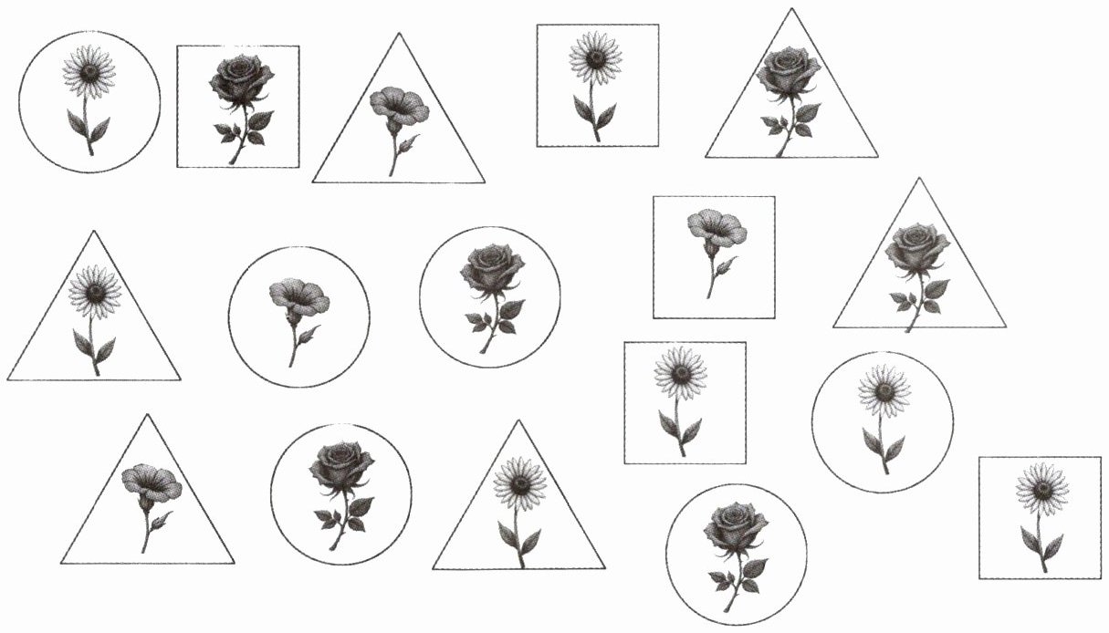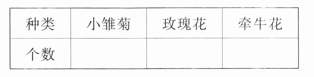 1. 先按卡片上花的种类分一分,把结果记录在表格里。